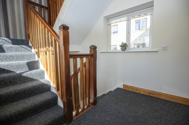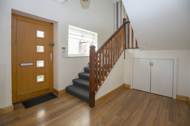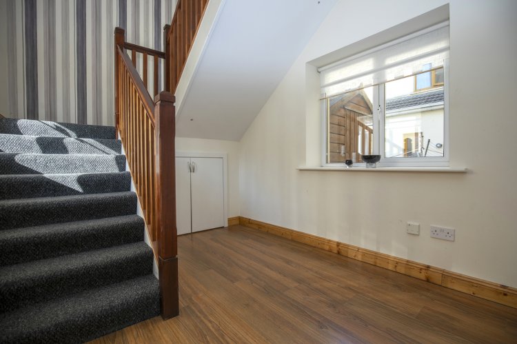 From the moment you arrive, the property makes an immediate impression. The own-door entrance opens into a wide and welcoming hallway, featuring high ceilings and modern laminate flooring, creating a sense of space, brightness, and warmth. The hall sets the tone for the rest of the home, with natural light filtering through and a neutral colour scheme that makes it easy for any new owner to add their own decorative touch.