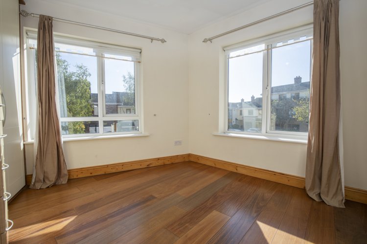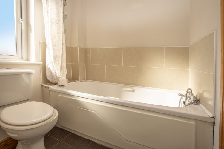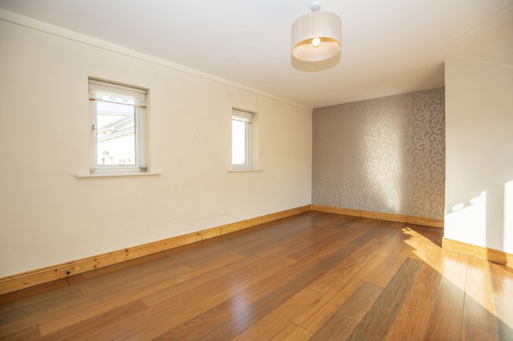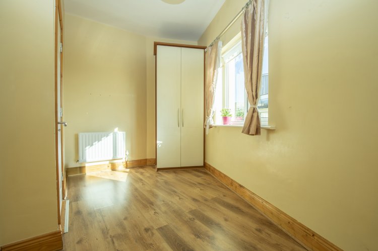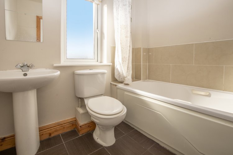 The second floor is home to three further bedrooms and the main bathroom, offering excellent privacy and flexibility for family members or guests. The master bedroom is particularly impressive, complete with laminate flooring, generous built-in wardrobes, and dual windows that flood the room with natural light. A private ensuite bathroom includes a shower suite, fully tiled floor, and stylish grey wall tiling, creating a modern and low-maintenance space. The second double bedroom also features built-in wardrobes and laminate flooring, while the third bedroom, a single, is ideal as a child’s room, guest room, or home office, with neutral décor and more built-in storage. The main family bathroom is fitted with a bath/shower suite, tiled flooring, and partially tiled walls, offering both practicality and comfort.
