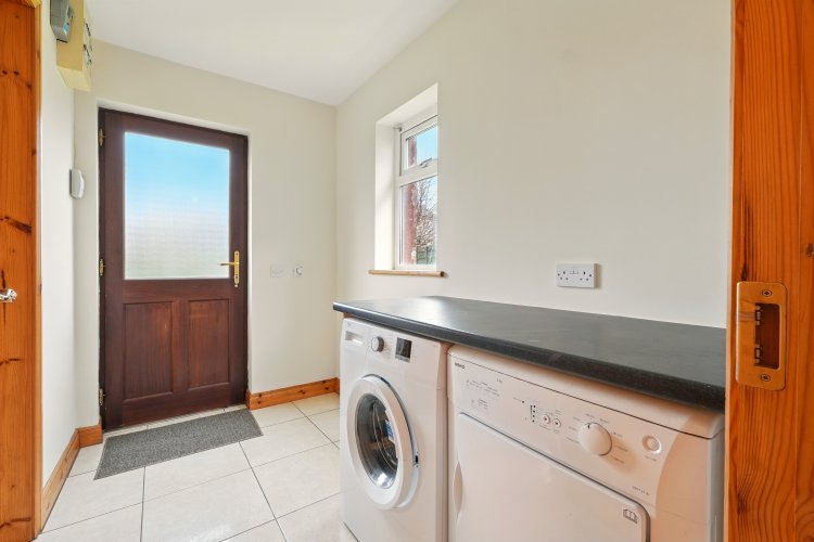 Finished with tiled flooring. Plumbed for washing machine & dryer. Door to rear garden.