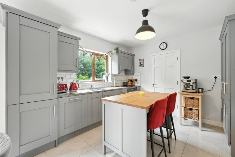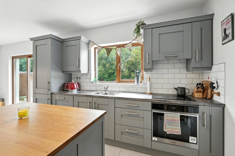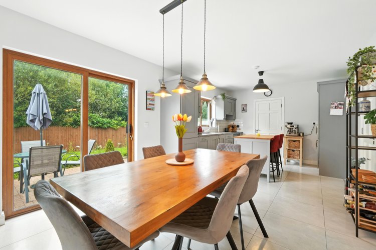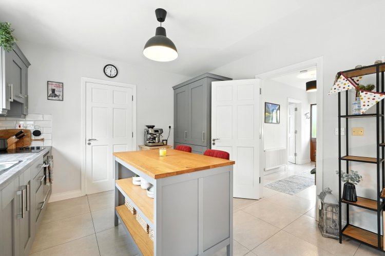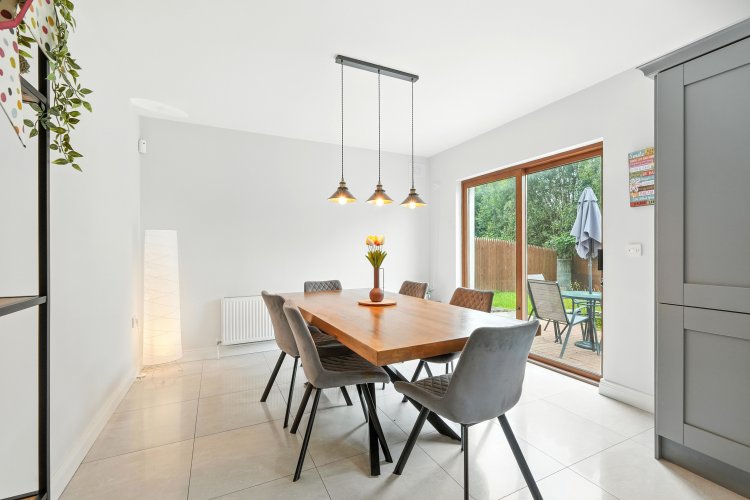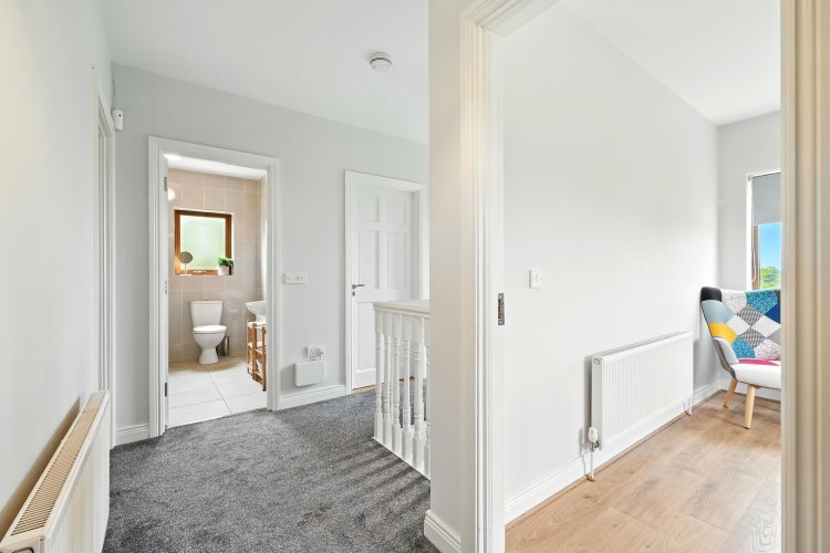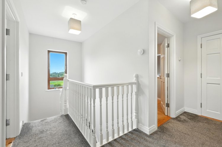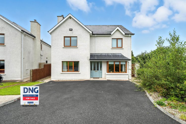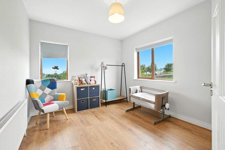 This spacious four-bedroom home offers bright, well-finished accommodation in a quiet residential setting. The ground floor includes a welcoming entrance hall, a generous living room with insert stove, a large south-facing kitchen/dining room with patio access to the private rear garden, a utility room, WC, and a versatile study that can double as a bedroom or home office. Upstairs, there are four bedrooms including a master with en-suite, plus a family bathroom. With quality finishes throughout, ample natural light, and a practical layout, this property is ideal for family living.