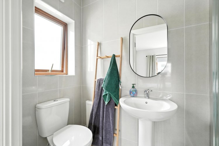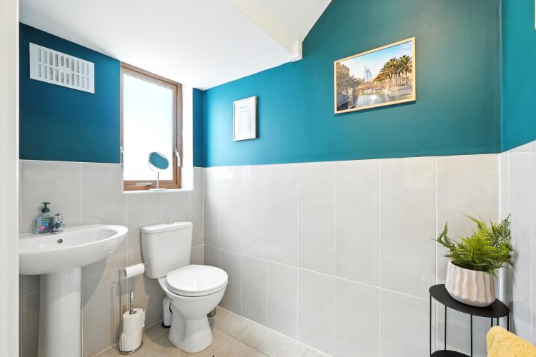 Fully tiled. WC, WHB and generous shower area complete with electric shower fitted. |