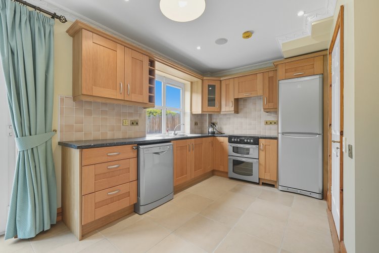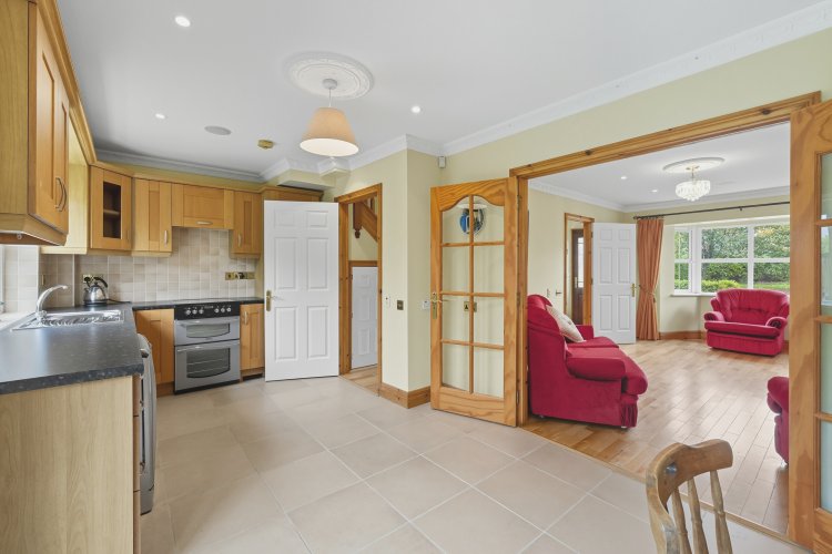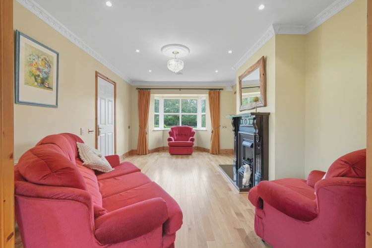 The property benefits from a beam vacuum system fitted throughout, is wired for surround sound, and is heated by oil-fired central heating to wall-mounted radiators. It also features double-glazed uPVC windows and doors along with a landscaped west-facing rear garden complete with patio.