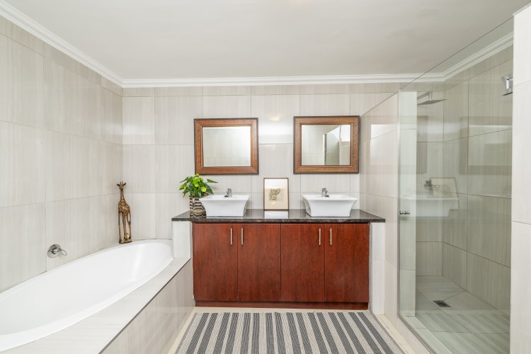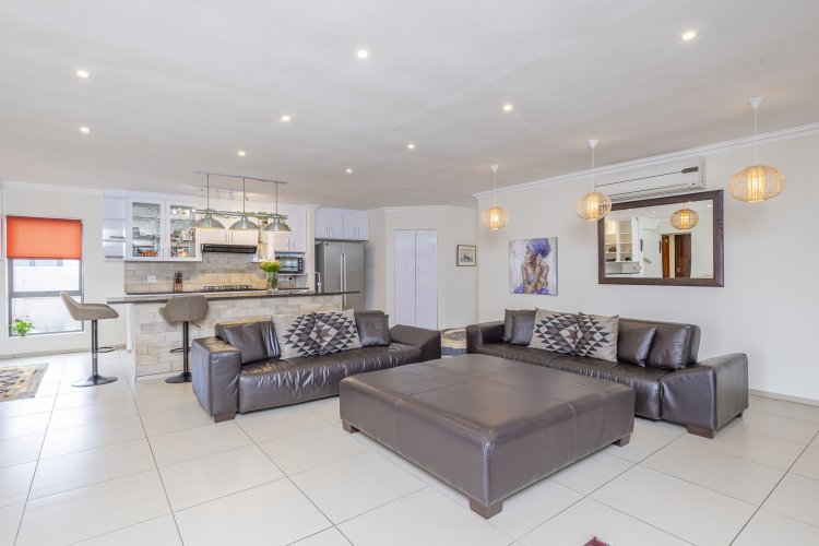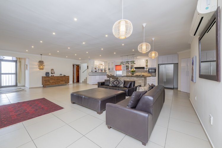 Known as the Hibiscus House, the property includes a spacious ground-floor main suite with a double vanity ensuite. Upstairs are three additional bedrooms, two of which share a north-facing balcony and 1.5 bathrooms. Added features include a solar inverter system, borehole with JoJo tanks, full alarm security, double garage, two secure parking bays, and a versatile home office or studio. Landscaped gardens border the Nature Reserve, just minutes from beaches, schools, and local amenities. Furniture and appliances available by negotiation.