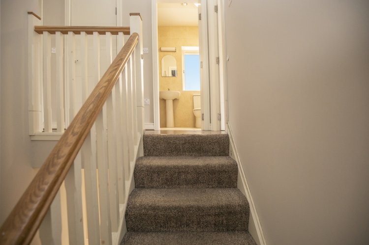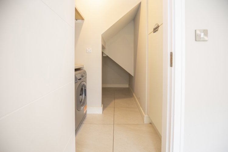 The living room offers a bright, spacious and modern living area, with a built in tv and shelving units it will allow the purchaser the opportunity to add their own décor to the space. There is also ample storage space and downstairs WC, in a tiled and simple design.