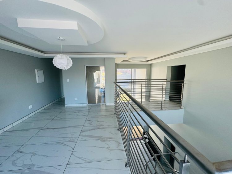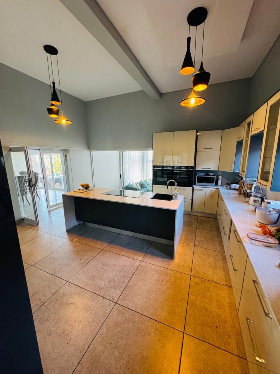 Welcome to this luxurious residence, featuring a spacious kitchen complete with a scullery. The kitchen seamlessly connects to a cozy TV room, which can be closed off with sliding doors for added privacy. Adjacent to the kitchen is a dining area that comfortably accommodates an eight-seater table.
