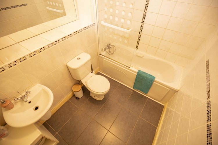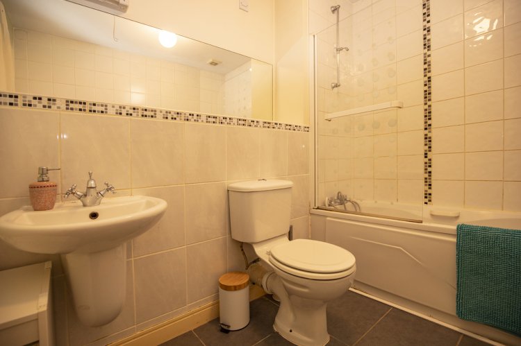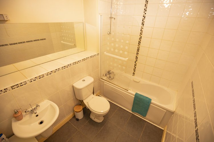 The remaining accommodation briefly comprises of Master Bedroom, situated to the rear of the property for added privacy, the master bedroom features built-in wardrobes, laminate flooring, and access to a second private balcony with a north-westerly aspect, perfect for enjoying the evening sun. A fully tiled ensuite bathroom with a sleek shower suite completes this private retreat. Second Bedroom, also located to the rear, the second double bedroom is bright, spacious, and comes with built-in wardrobes and stylish laminate wood flooring, offering excellent flexibility as a guest room, home office, or children’s bedroom. Main Bathroom is equally well-appointed, featuring a full bath/shower suite, fully tiled walls and floor, and a clean, neutral finish.