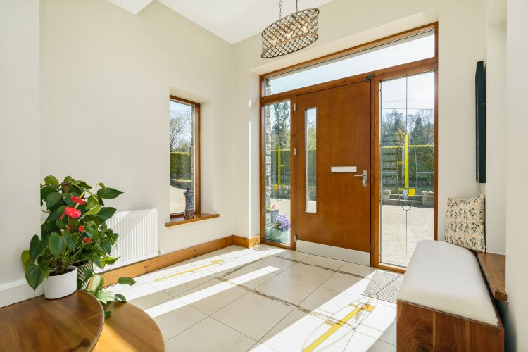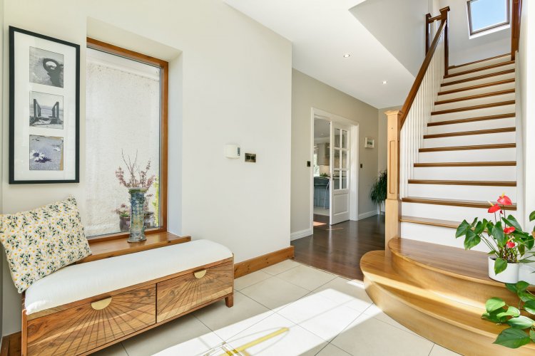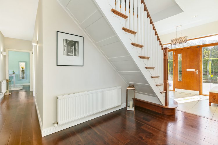 | The entrance hall features tiled flooring, a bespoke open-plan staircase, and solid wood flooring throughout the rest of the hallway. 22.62 sqm (243.4 sqft) | | Kitchen/Dining/Living Area