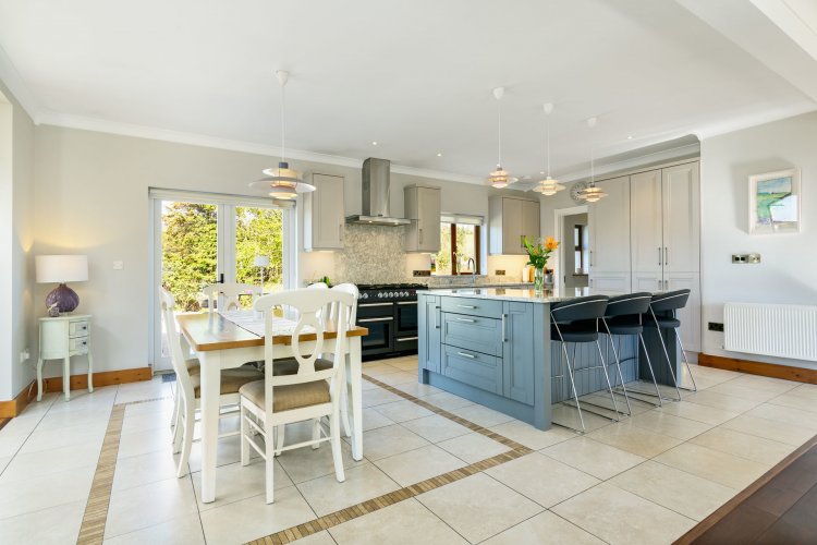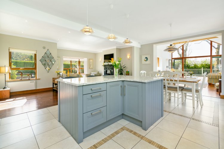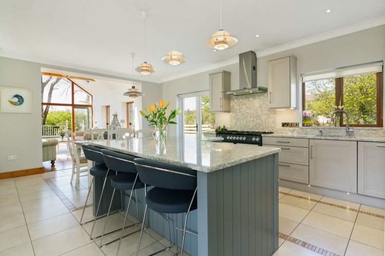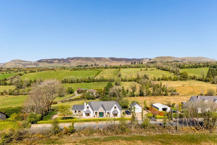 Situated in the tranquil setting of Colgagh, Calry, this superbly appointed residence offers the perfect balance of country living with convenient access to Sligo Town and all its amenities. Presented in impeccable condition throughout, the property has been thoughtfully enhanced and meticulously maintained to an exceptional standard. The accommodation comprises an impressive open-plan kitchen, dining, and living area, featuring a bespoke fitted kitchen with granite worktops, a central island, and a Rangemaster oven. This room has been extended into a sun lounge with vaulted ceilings, exposed timber beams, and floor-to-apex glazing, creating a light-filled and inviting environment. The residence includes four generous bedrooms, three of which are en suite, alongside a home office with bespoke fitted bookcases, offering versatility for remote working or additional living space. The home is heated by oil-fired central heating, and boasts a high-quality finishes throughout. This outstanding property represents a rare opportunity to acquire a substantial, high-specification family home in a peaceful, sought-after location.