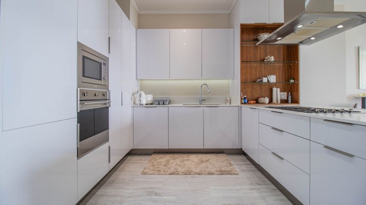 Modern kitchen with Caesarstone countertops and top-quality Smeg appliances, including: