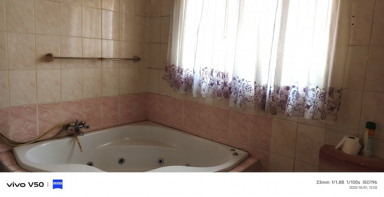 The kitchen is fitted with standard steel cupboards, offering the perfect opportunity to create your dream kitchen. Down the hallway, you’ll find a full bathroom with a bathtub and toilet. All three bedrooms are generously sized with built-in cupboards. The master bedroom includes an en-suite bathroom with a shower, toilet, and corner jet bathtub (note: the pump is not currently installed).
