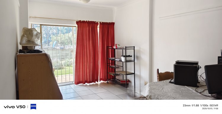 This property offers both comfortable living and exciting income opportunities. The home features a spacious living room that flows seamlessly into the dining area, which opens onto a covered stoep through a sliding door fitted with a safety gate.