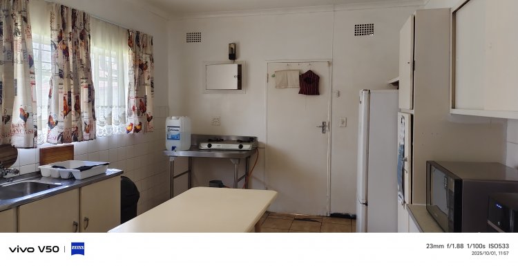 Adding extra value is a unique section of the home previously used as a tuck shop. This area includes a separate washing-up space, a large preparation area, and direct street access without needing to enter the main property—ideal for small functions or a business. A trading license is in place, opening the door for endless income potential. Situated directly across from the high school, the location is perfect for selling snacks and warm meals during school hours.