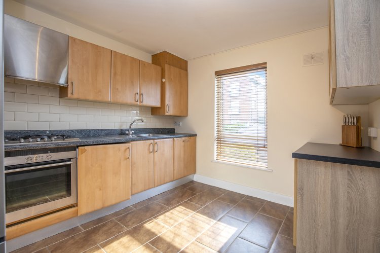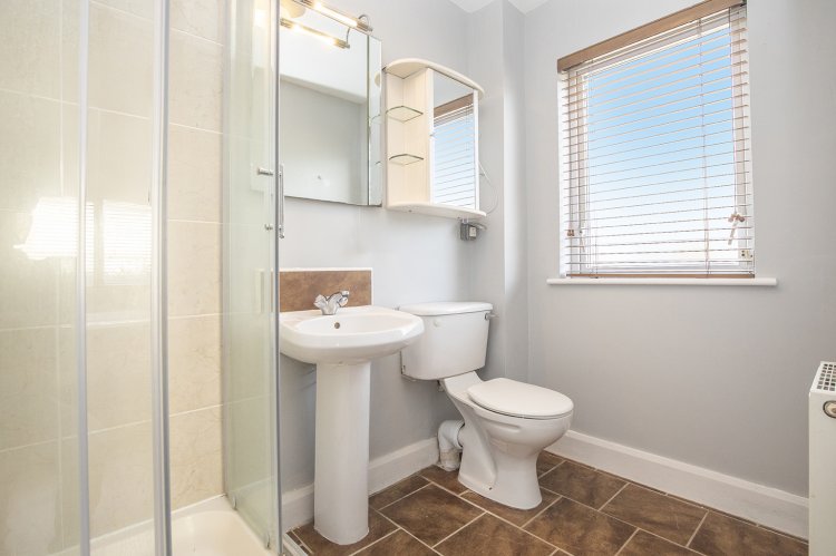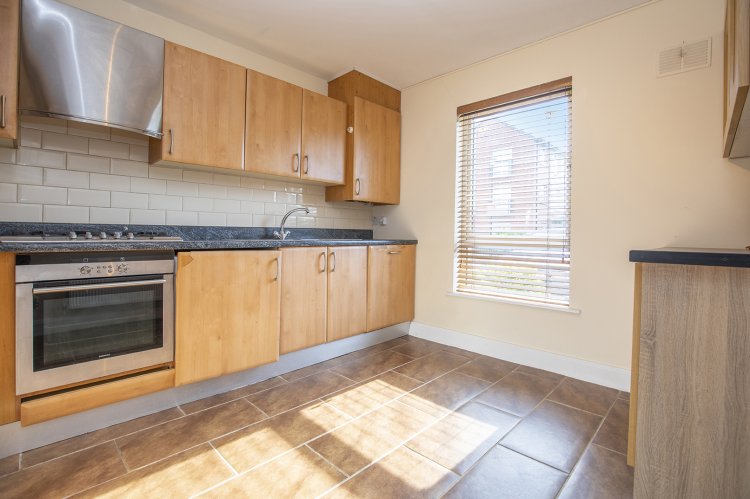 The accommodation further consists of two bedrooms all with inbuilt wardrobes and laminate wood style flooring, the master bedroom with ensuite is positioned to the rear of the property and with large windows the room is again flooded with an abundance natural light. The bright spacious second double bedroom is also positioned to the rear of the property. The main bathroom offers a fully tiled floor and partially tiled wall with a bath/shower suite.