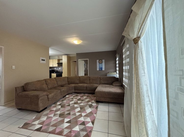 Open plan area for dining and tv room/living room, with nice sunlight.