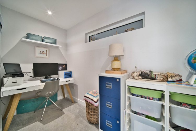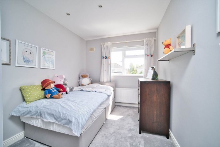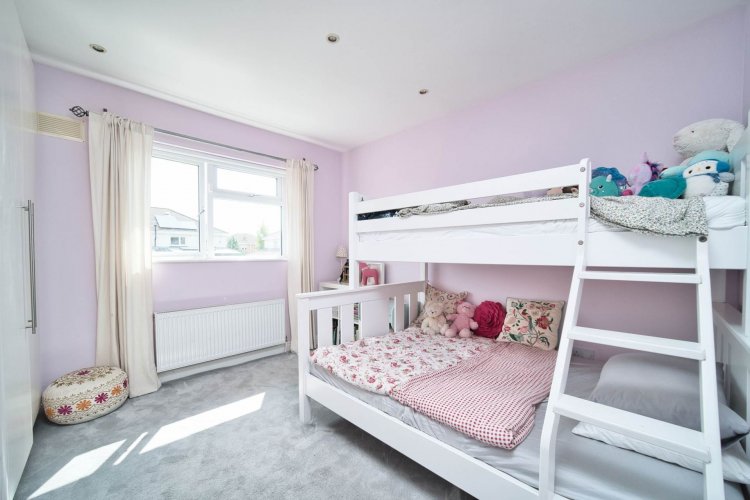 Bedroom 3 3.42m x 2.56m Carpet, fitted wardrobes, recessed lights, curtains and blinds.