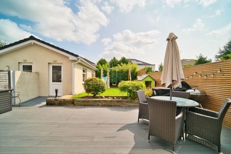 • Coonan Property proudly presents this beautifully refurbished 142 sq.m (1,528 sq.ft) home with attic conversion, ideally positioned in the ever-popular Simmonstown Manor just 300m from the heart of Celbridge town. • Hugely spacious accommodation includes a welcoming entrance hall, elegant living room, guest WC, expansive open-plan kitchen/dining/living space, home office, three bedrooms (master ensuite), family bathroom, and a superb attic conversion. • Fully refurbished in recent years to an exceptional standard, the home now features a sleek, modern kitchen with premium Miele appliances, contemporary bathroom suites, and high-quality flooring throughout. • Impressive B2 BER rating, supported by a high-efficiency gas heating system, 10 Solar PV panels with battery storage, and new double-glazed windows. • The attic conversion adds an extra 13 sq.m (139 sq.ft) of versatile space ideal as a playroom, home gym, or quiet retreat along with generous eaves storage. • The heart of the home is the open-plan kitchen/dining/living area, where large sliding glass doors and overhead roof windows flood the space with natural light. • The private, south-facing rear garden is a true haven featuring low-maintenance composite decking, wood-panelled walls, and a block-built shed perfect for al fresco dining and entertaining. • Located in one of Celbridge's most sought-after developments, Simmonstown Manor offers a mature, family-friendly setting just a five-minute stroll to the Main Street and easy access to Hazelhatch Train Station. • A host of amenities are within easy reach including supermarkets, schools, cafés, restaurants, bus links, sports clubs, and more making this an ideal home for modern and convenient family living.