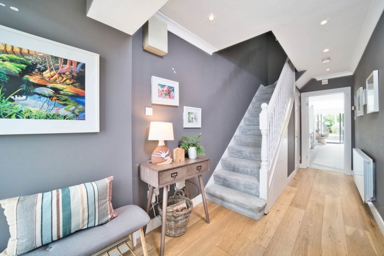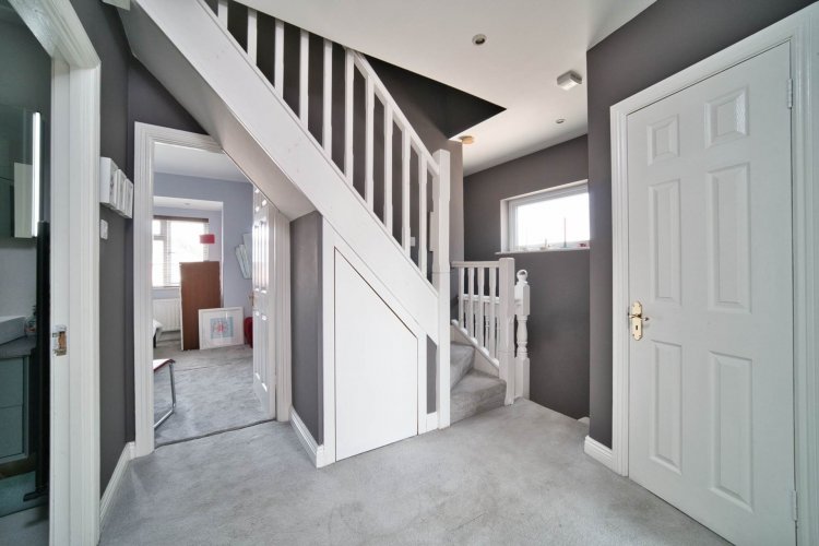 Entrance Hallway 5.58m x 1.91m Engineered oak flooring, coving, recessed lights, new composite front door, alarm panel and smart under stairs storage.