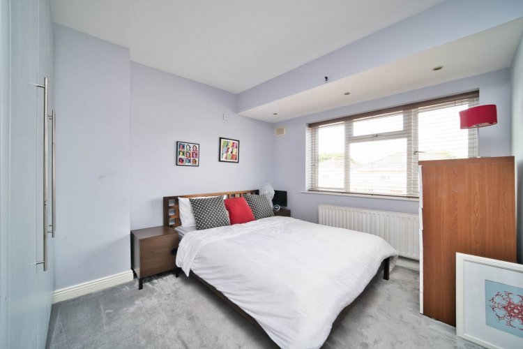 Bedroom 2 3.43m x 3.4m Carpet, fitted wardrobes, recessed lights, curtains and blinds.